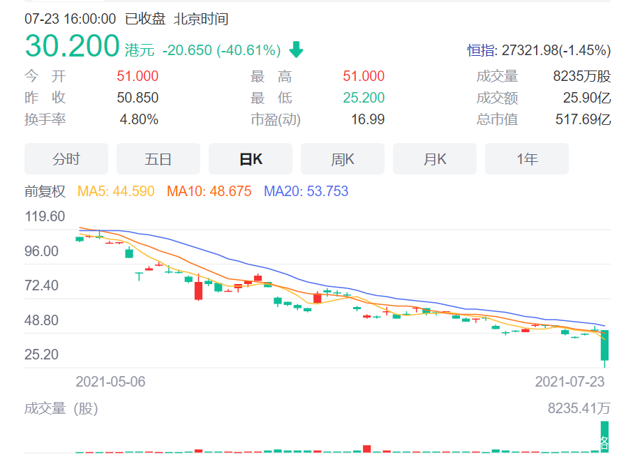 7月23日晚間,好未來教育集團發佈公告稱,今日(23日)注意到部分媒體發佈了中國考慮針對課外學科輔導服務實施新監管政策的報道,該監管政策尚未發佈,公司暫未收到來自監管部門任何正式通知。公司不對市場推測做出評論。