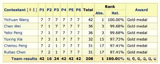 同時,中國隊王一川同學還摘得了本屆IMO唯一一個滿分!