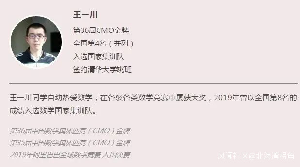王一川自幼熱愛數學,在各級各類數學競賽中屢獲大獎。2019年曾以全國第8名的成績入選數學國家集訓隊。