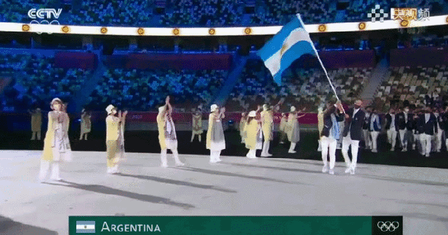 **轉圈圈型:**來自阿根廷的兩名旗手,以男旗手為圓心,以女旗手的腳步為半徑,直接在場上揮舞着國旗來了個愛的魔力轉圈圈,很活潑了
