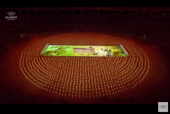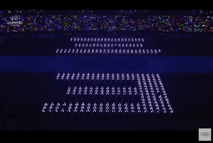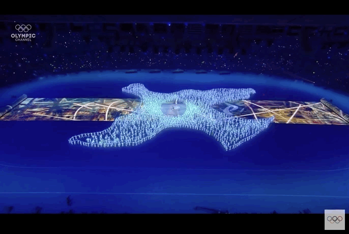 上千名錶演者用身上的熒光組成了一隻“會飛”的和平鴿,代表着我們對世界和平的期許。