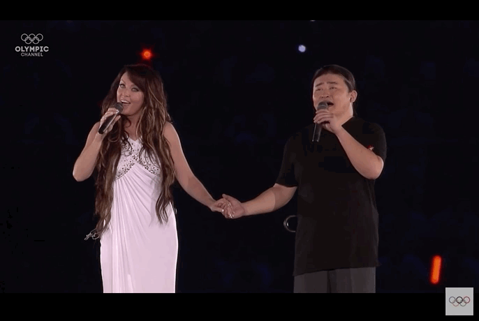 劉歡和莎拉·布萊曼演唱奧運會主題曲《我和你》。