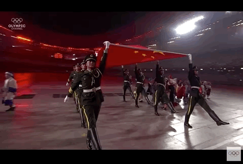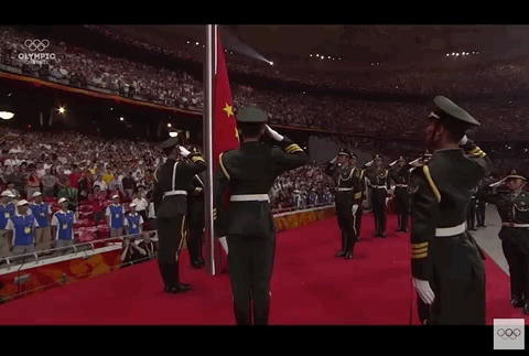 全場起立,近十萬人高唱中華人民共和國國歌。