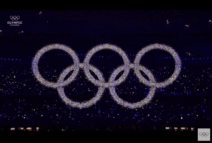 漫天的繁星匯聚成一個閃閃發光的星耀五環,