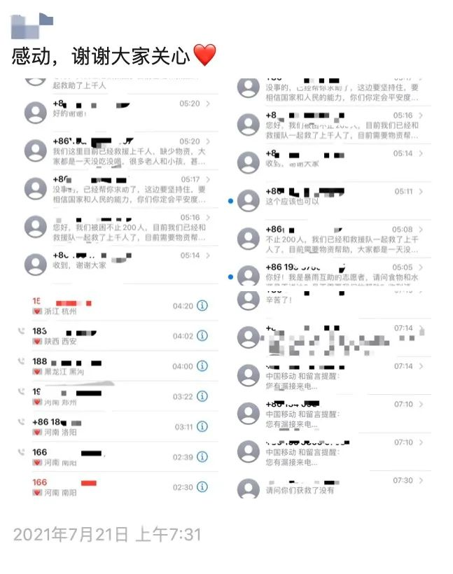 中午11點,趙鑫田的手機猛然開始“滴滴滴”,接二連三地湧入志願者的短信。陌生的號碼關心他們在高架橋下近千人的昨夜險情,但手機信號仍舊斷斷續續,趙鑫田只能努力回覆。