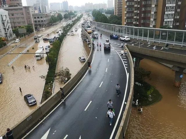 7月20日,鄭州暴雨致路面積水嚴重(圖源:中新網)