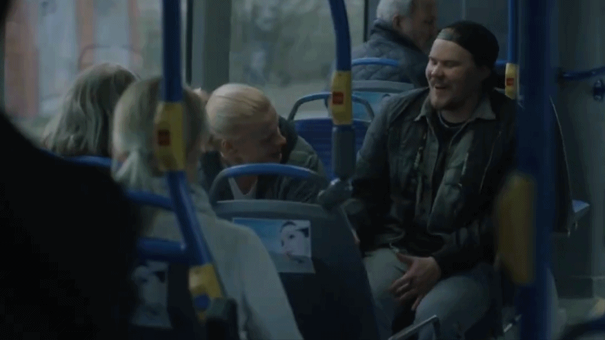 公車上,兩名猥瑣男對一位女性進行性騷擾。