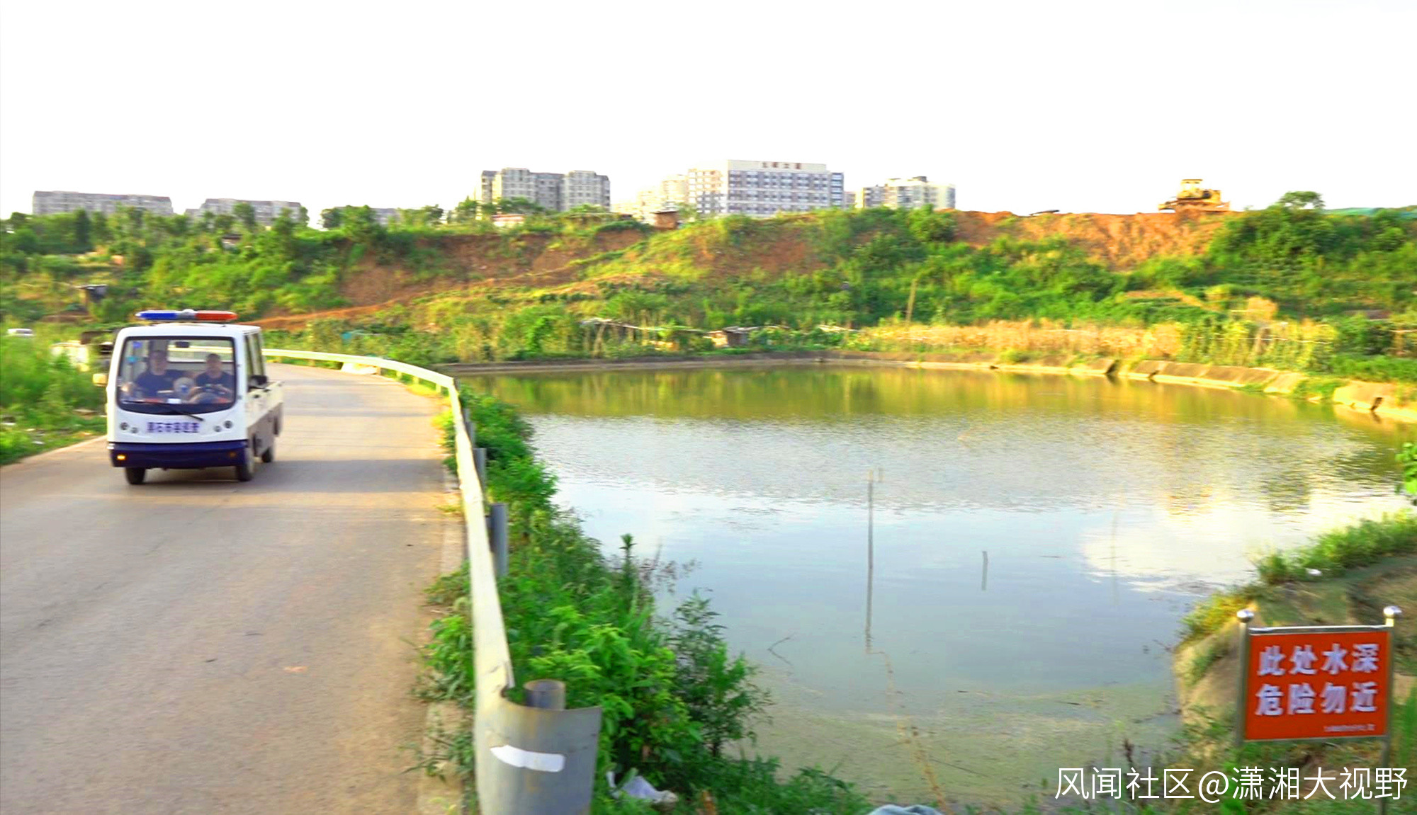 7月22日,記者在創谷社區雀園路南網格區域看到,此處處於城鄉結合部,有不少菜地和兩個水塘,水塘邊上樹立了“此處水深 危險勿近”的安全警示牌。不時有巡邏員開着防溺水宣傳車,在此處查看,每到一處,巡邏員都是千叮嚀萬囑咐居住在水域附近的羣眾,看到有未成年人下水嬉鬧,一定要及時制止。