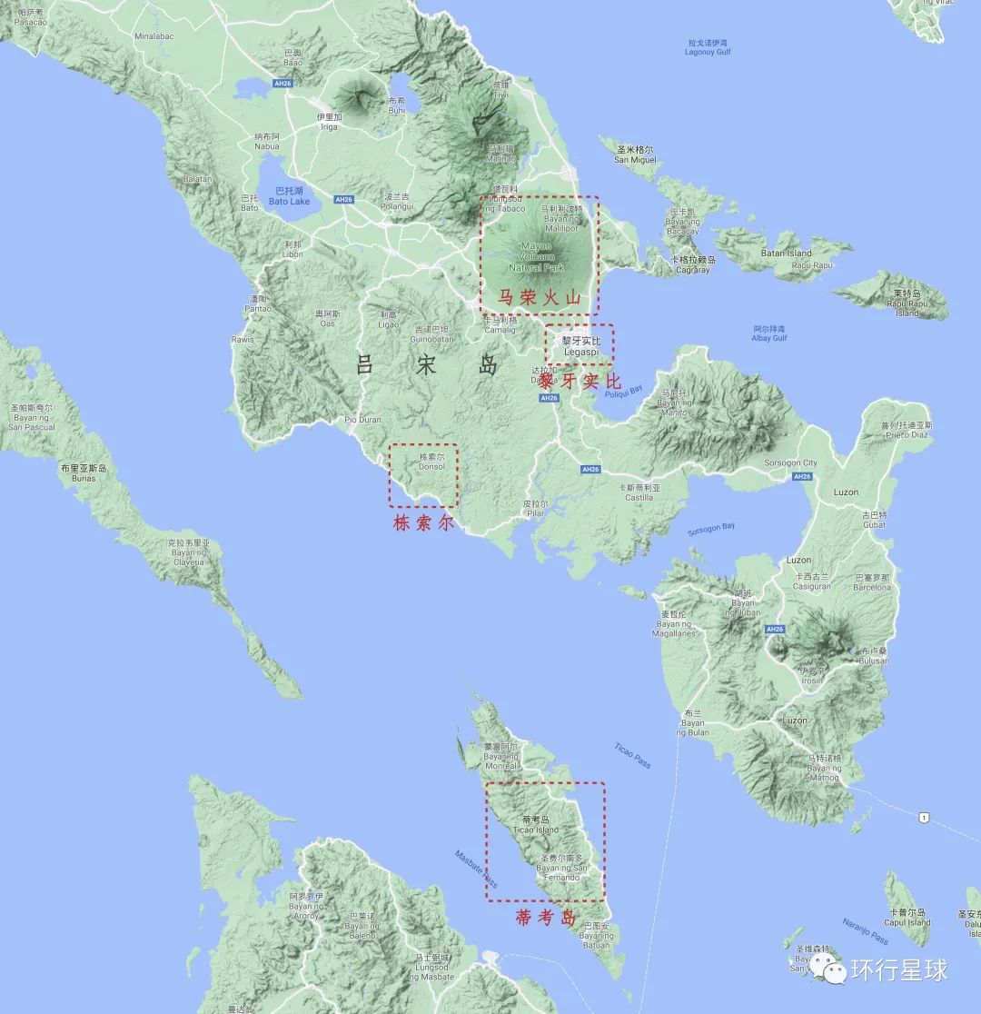 馬榮火山在東南端,旁邊就是黎牙實比城