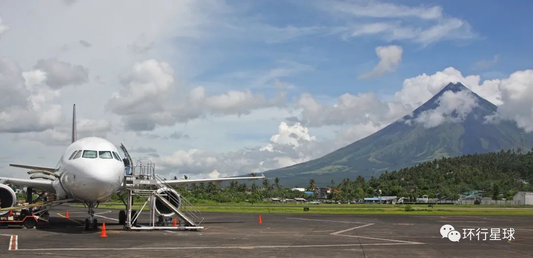 萊加斯皮機場,背景就是馬榮火山(滑動)