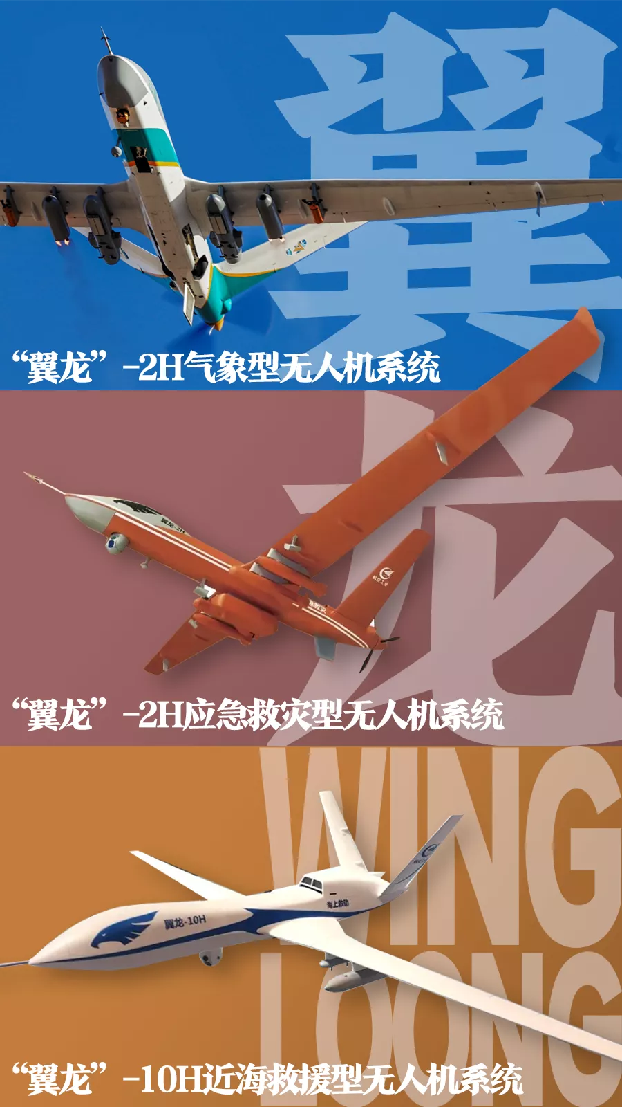 這還不算,按照航空工業的説法,“翼龍-2”型無人機除了已經實際運用的空中通訊基站和災情探查型,還已經發展出了氣象型、運輸型和滅火型等另外幾種民用改進型: