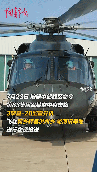 説完了在高空默默發揮作用的“翼龍-2H”,這兩天更引人注目的就是中部戰區某集團軍某部出動的直-20型直升機了,從7月23日、7月24日兩天的情況來看,陸軍航空兵某旅的3架直-20型直升機在短短一天的時間內,就飛行了五十多個架次(這個數據實在是有點驚人),向河南新鄉輝縣的部分受災鄉鎮運輸了五十多噸救援物資。