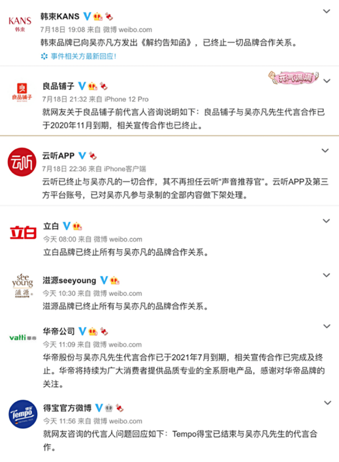 從被都美竹在微博上一頓神捶開始,吳亦凡已經丟掉了14個代言,包括奢侈品牌寶格麗、保時捷,只有LV以暫停合作的形式,宣佈等到司法調查結束公佈是否解約。