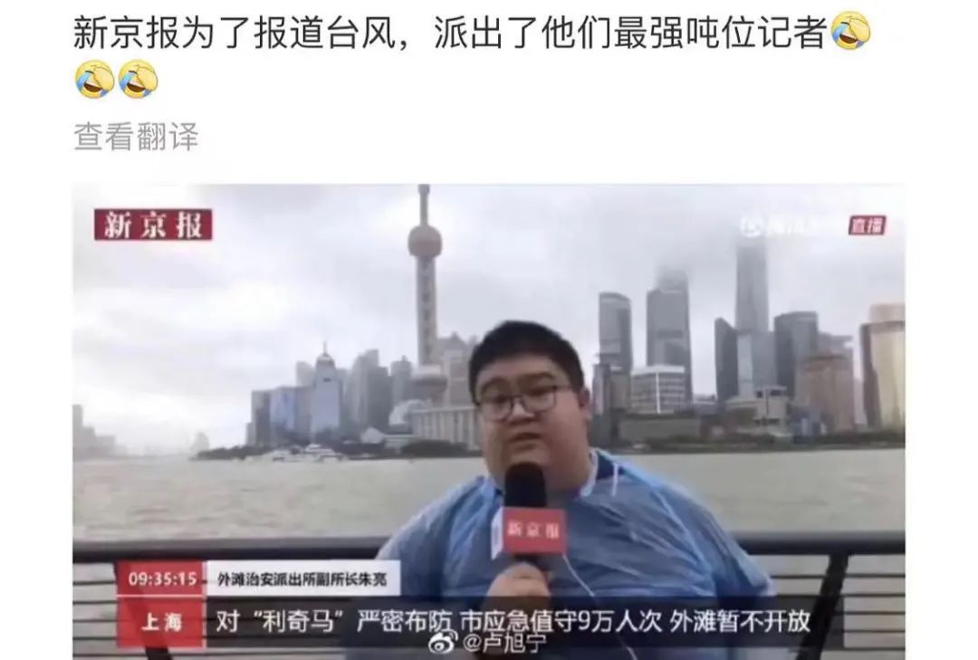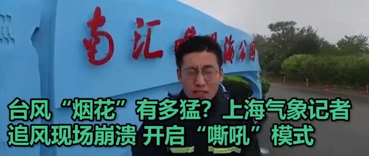 敬業!上海氣象台小哥直擊颱風“煙花”,身體綁繩嘶吼…網友:想到颱風專用記者了_風聞