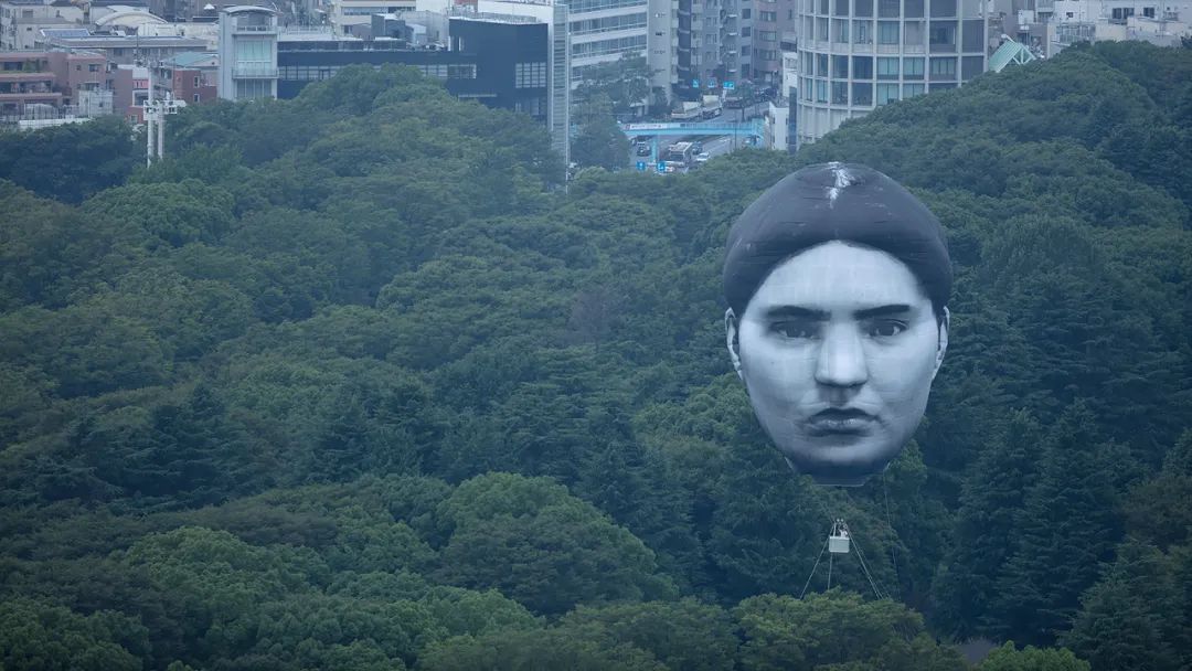 開幕前,東京上空升起了一個巨大懸浮人頭熱氣球。