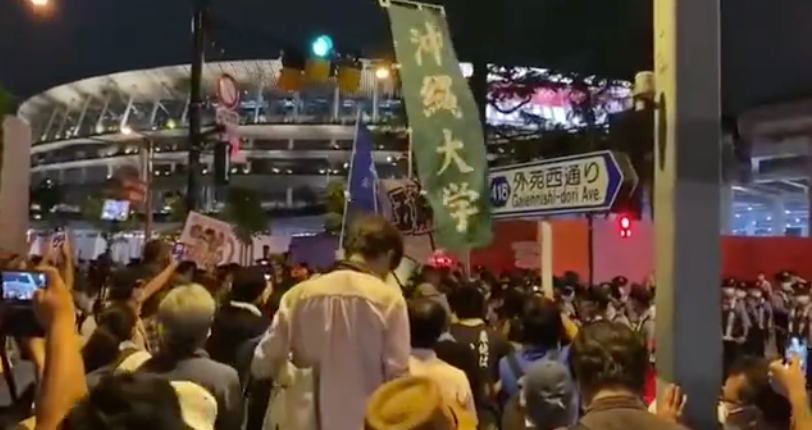 即便是開幕式前,仍有民眾在場館外抗議取消奧運會。