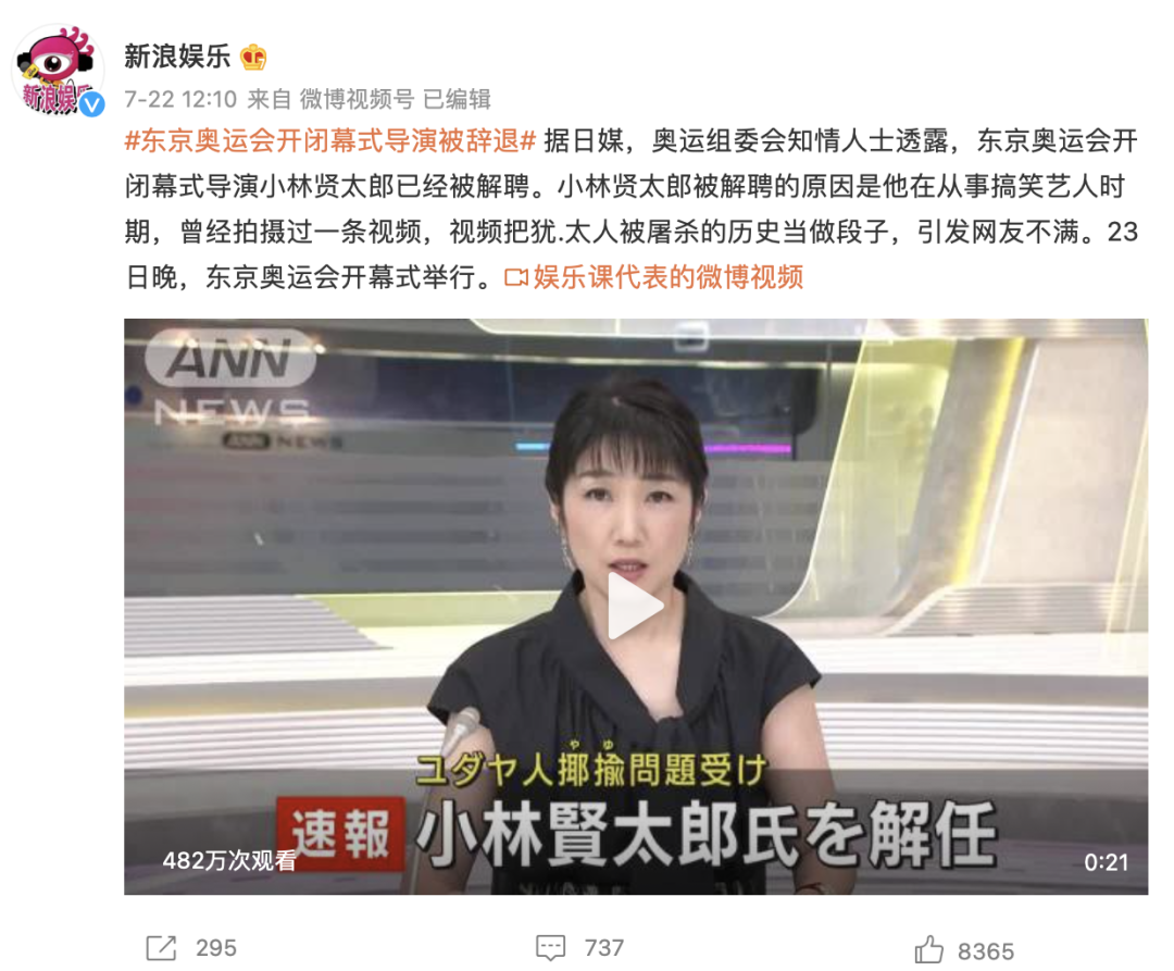 誰知就在開幕式的前一天,總導演因過去涉嫌大屠殺不當言論被開除了。