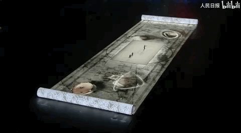 戰國儒士手持書簡,低吟論語, 中心活字印刷術字模錯落有致,起伏湧動,彙集為“和”。