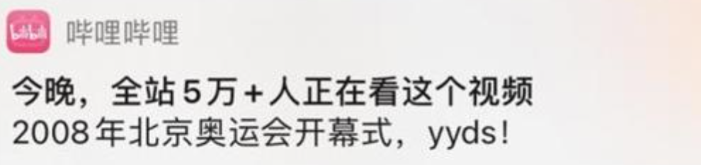 開幕式當天,近5萬人衝到B站觀看2008年北京奧運會。