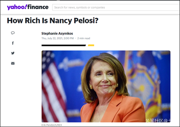7月22日,美國財經媒體雅虎金融轉發了一篇名為“佩洛西有多富”的文章,該文章列舉了佩洛西的多項收入來源,並指出她是美國國會中收入最高的人。結果,文中的一句話引發了美國網友的怒火。