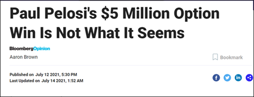 不過,就在大家都對這些交易感到憤怒之際,專業財經媒體彭博社發了篇社評來替佩洛西“滅火”。這篇社評的作者從交易規則、佩洛西掌握的市場信息的價值等角度,企圖得出一個“這不是內幕交易”的結論。