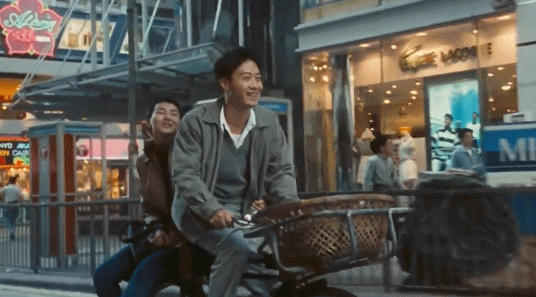 異鄉香港的街頭,李翹坐在黎小軍的自行車後座,“甜蜜蜜,你笑得甜蜜蜜……”