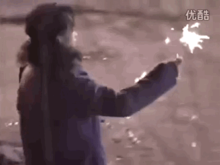 拿着煙花的周迅,在結冰的河面手舞足蹈,開心得像個小女孩,眼裏彷彿有星星。