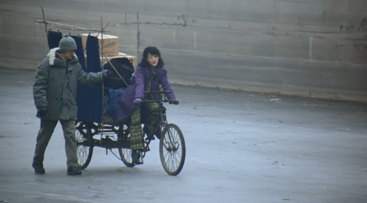 孫納和林見東蹬着三輪車,她嘴裏唱着那首齊秦的《外面的世界》。