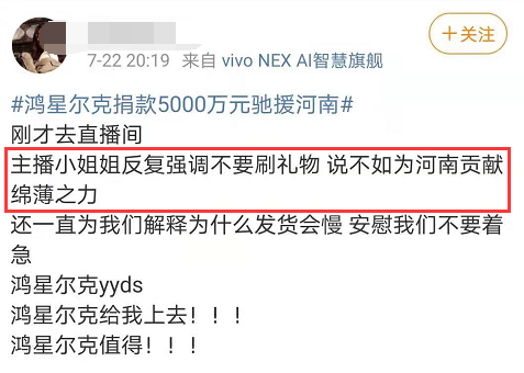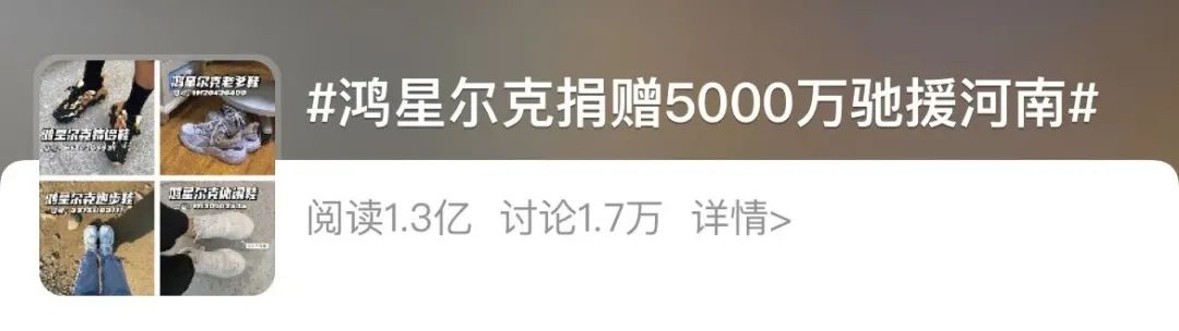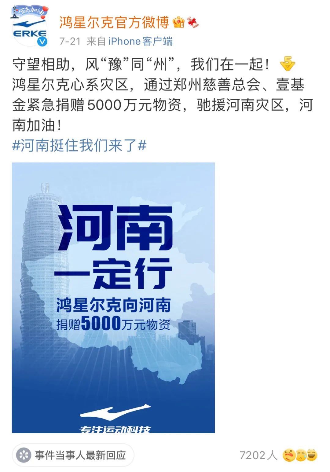 但很快,就有細心的網友發現,平常很沒有存在感的鴻星爾克,竟然默不出聲的捐了“5000萬元物資”。