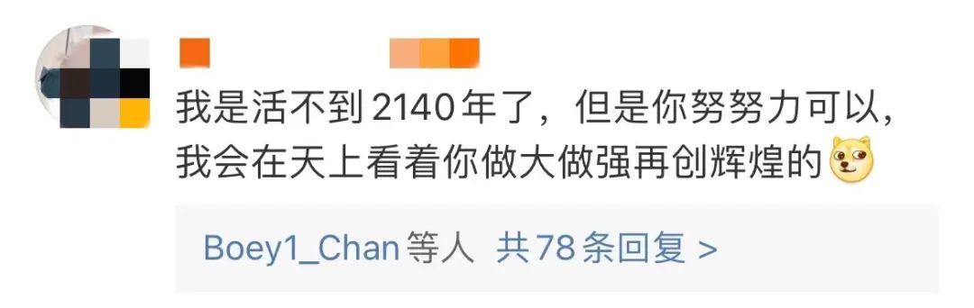 網友則表示:“雖然我活不到2140年,但我可以在天上看着你再創輝煌。”