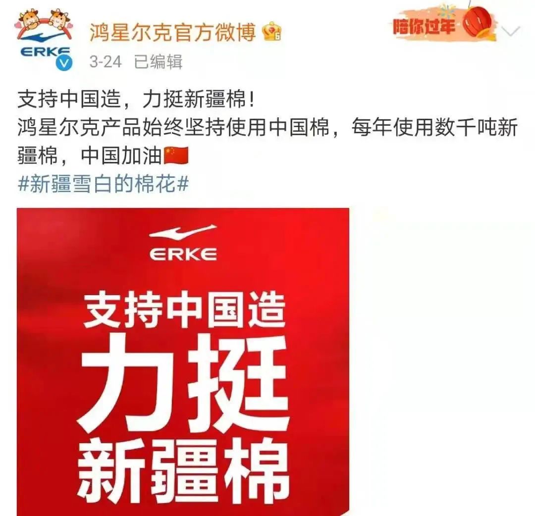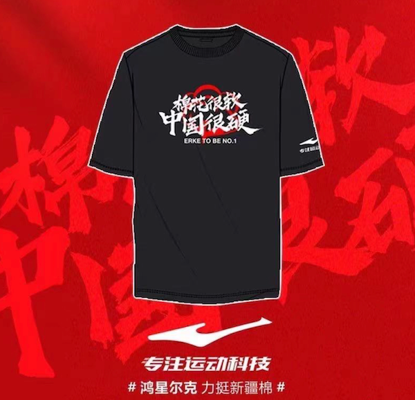 “一直以來,鴻星爾克產品始終堅持使用中國棉,每年使用數千噸新疆棉。”