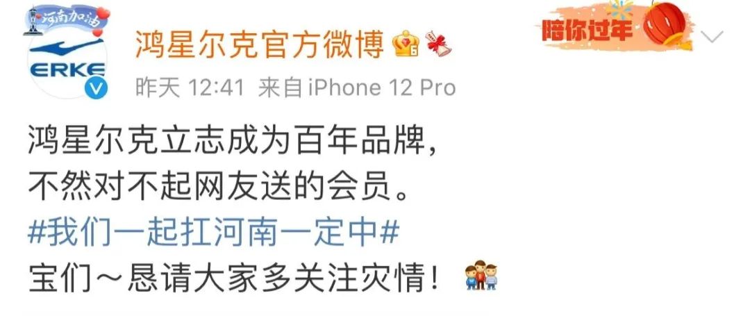 會員是一個官博最基本的素養,這個牌面,其他官博有的,鴻星爾克必須也得有。