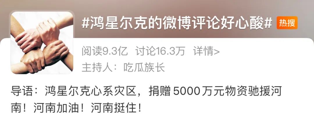 終於在22日晚上,#鴻星爾克捐款5000萬元馳援河南#和#鴻星爾克的微博評論好心酸#兩個詞條硬是純靠網友手動被頂上熱搜。