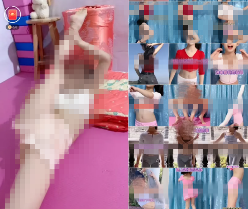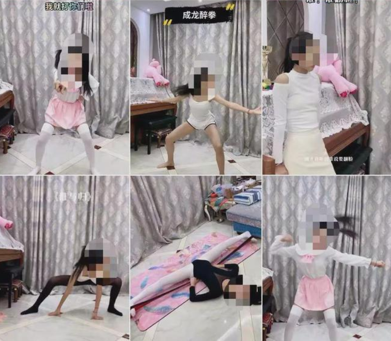 在某些視頻中,這些賬號甚至會讓女孩的男性家屬輪番給女孩壓仰面一字馬,直接讓人生理不適。