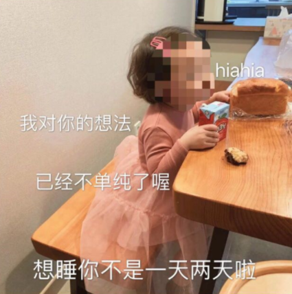 這些表情包裏,小朋友的照片被P上“有種和我一起睡”、“饞你身子好久了”、“想睡你不是一天兩天了”“來吧!禽獸!我準備好了”等充滿暗示的文字。