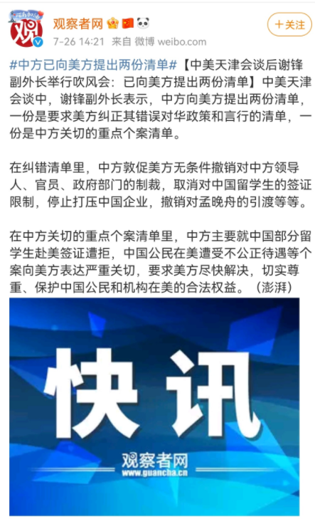 對美談判清單把美國憑空搞出來的籌碼,變成了它自己的障礙,這就是勿謂言之不預_風聞