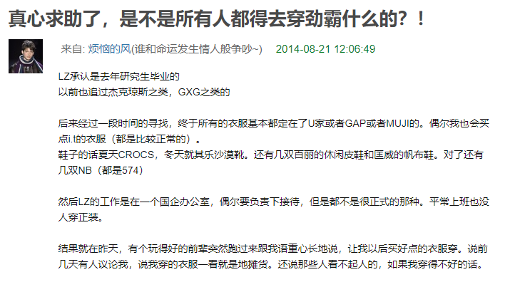 關於“中年領導讓我整一件上檔次的勁霸男裝,我該怎麼辦?”的帖子,引發了年輕人的審美求救。
