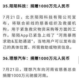 勁霸男裝在洪災中捐助1000萬元物資,竟然捐進了陌陌、理想汽車這樣的新興大廠的捐款梯度?