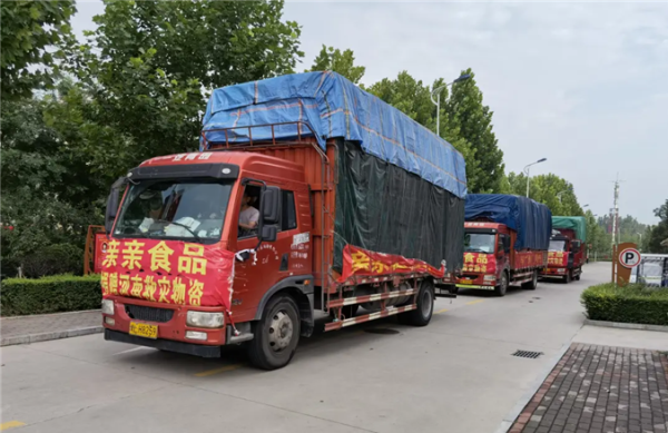 但牛逼的是,親親食品仍然發揮着一個食品企業能發揮的最大的社會責任感。它帶着100萬元的物資,奔馳河南災區,送上親親的方便食品和飲用水。