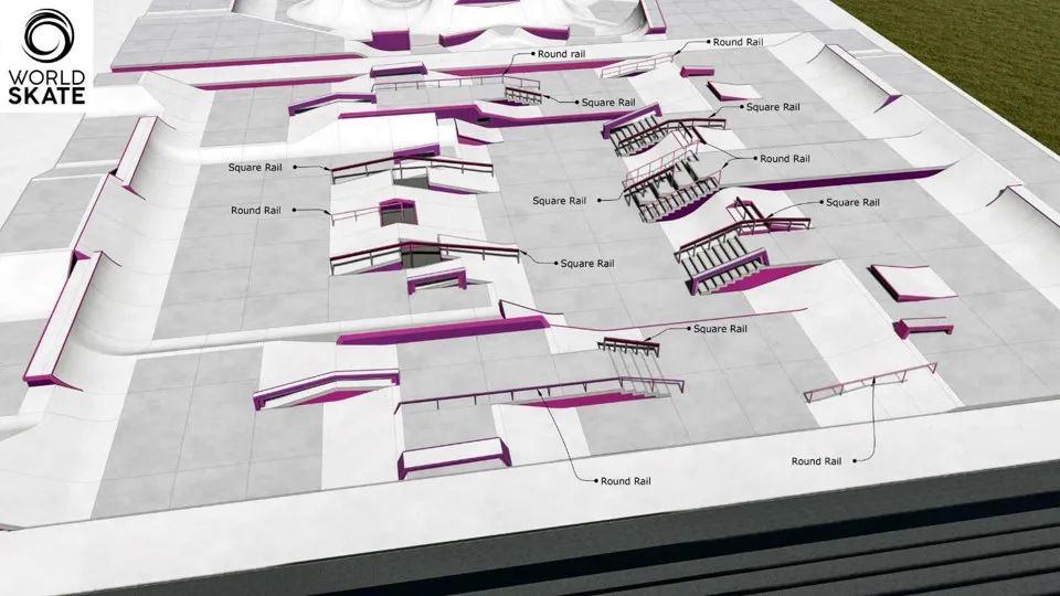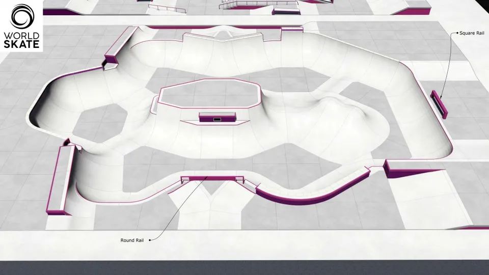 比賽共有兩個項目,分別是街式賽(street)——男、女和公園賽(park,也可以説碗池)——男、女。街式賽的場地是在有着把手、座椅的街道類似的線路上,藉助這些道具完成動作。大概就是嫌路上的設施不夠舊,帶着板跳上去磨一磨。而公園賽的場地則是在一個“碗”裏。運動員將會在這裏完成設計好的路線,並在“碗口”滯空時展示技術動作。
