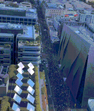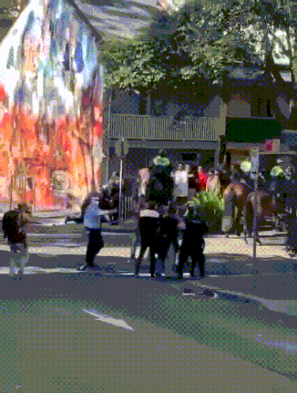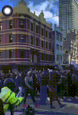 但仍然阻止不了抗議者突破警方構築的障礙,繼續沿着George St前進。
