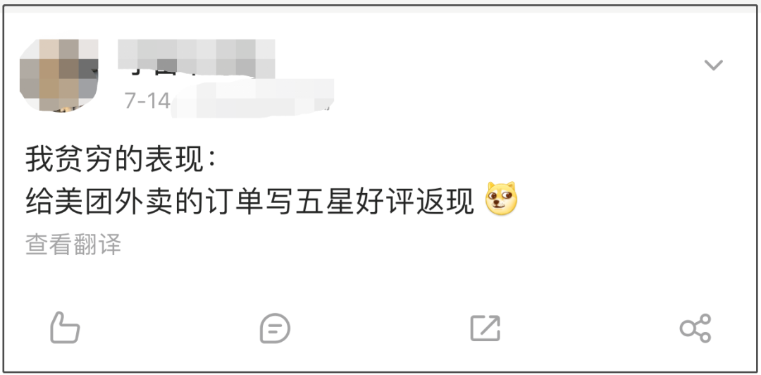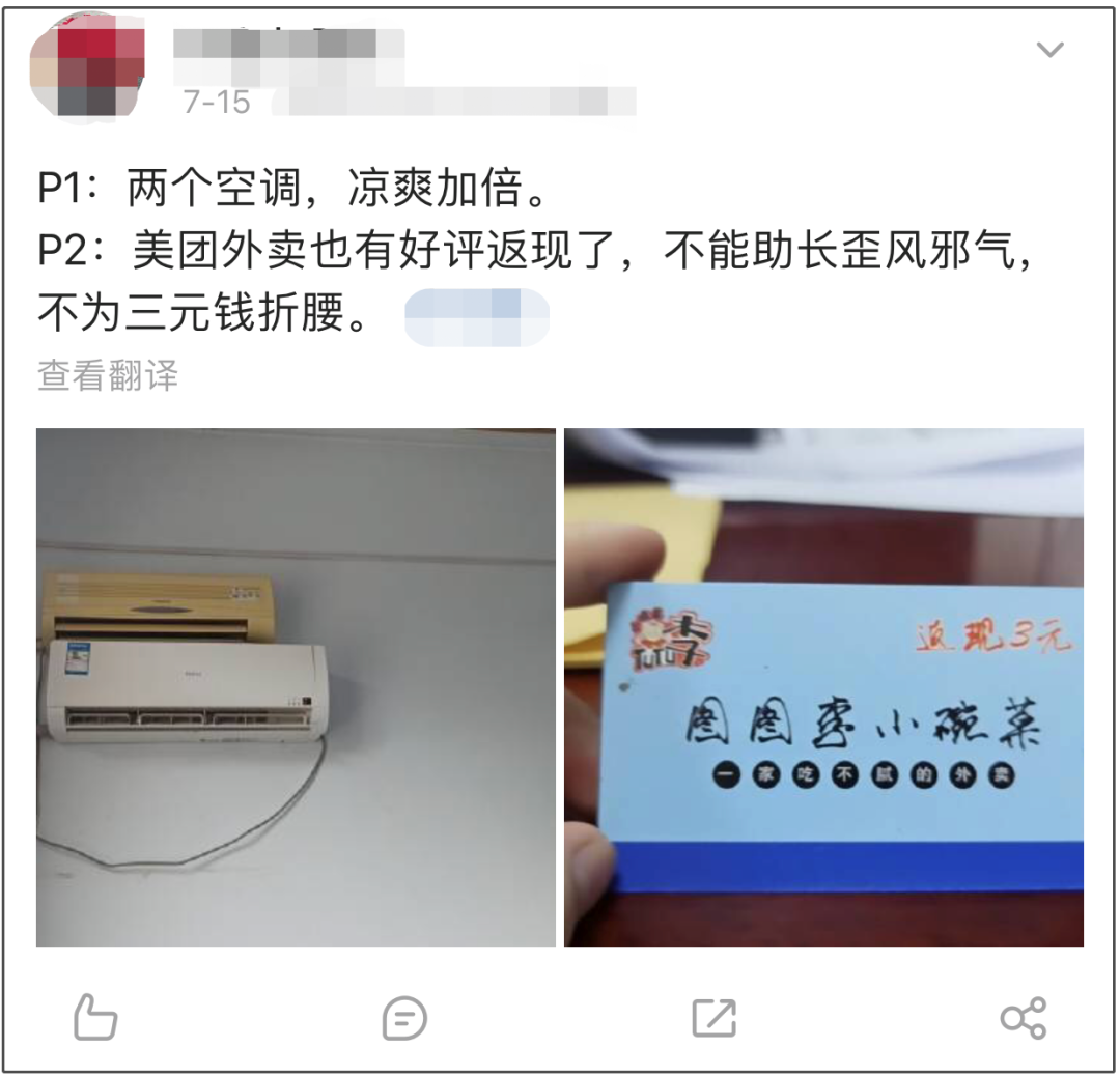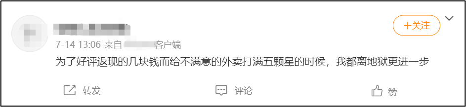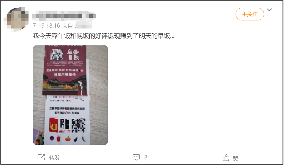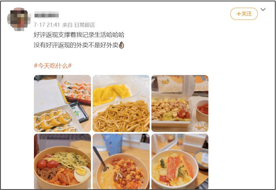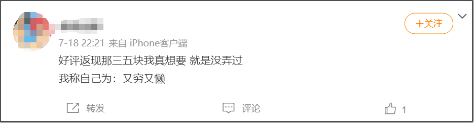 我有個天天吃外賣的朋友,總説自己視金錢如糞土,大多數時候對好評返現不屑一顧。