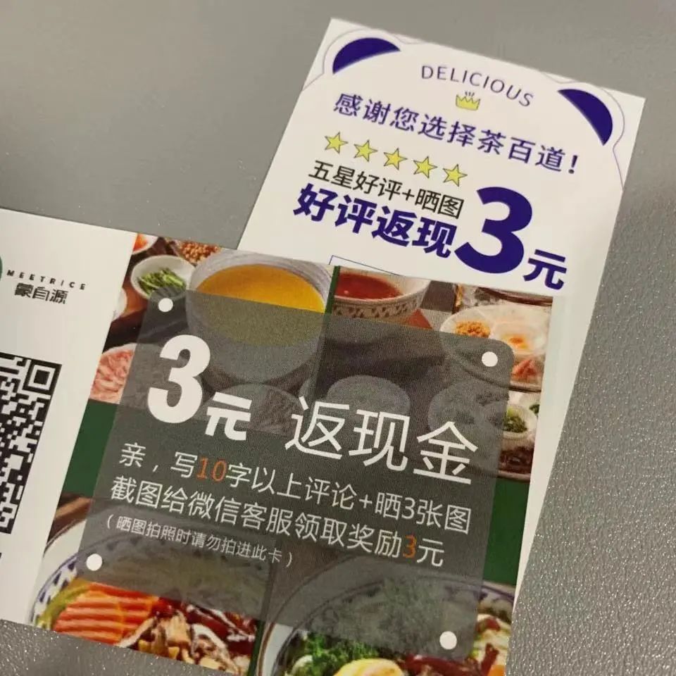 這些返現卡已經成為了外賣時代的紙質流通貨幣,是商家好評如潮的制勝法寶。