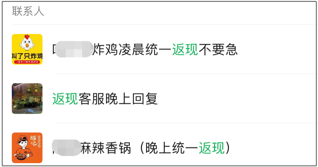 在中信大廈上班的佳麗説,只要她餓了,中信周邊5公里內的餐館都可以在微信上隨叫隨到,聽她使喚。原因是持之以恆外賣返現之後,她幾乎擁有了中信5公里內所有的餐館老闆的微信,她管這叫人脈,比通訊錄裏的護膚品微商、中介有用多了,畢竟人不一定天天敷面膜,但人天天都得吃飯。