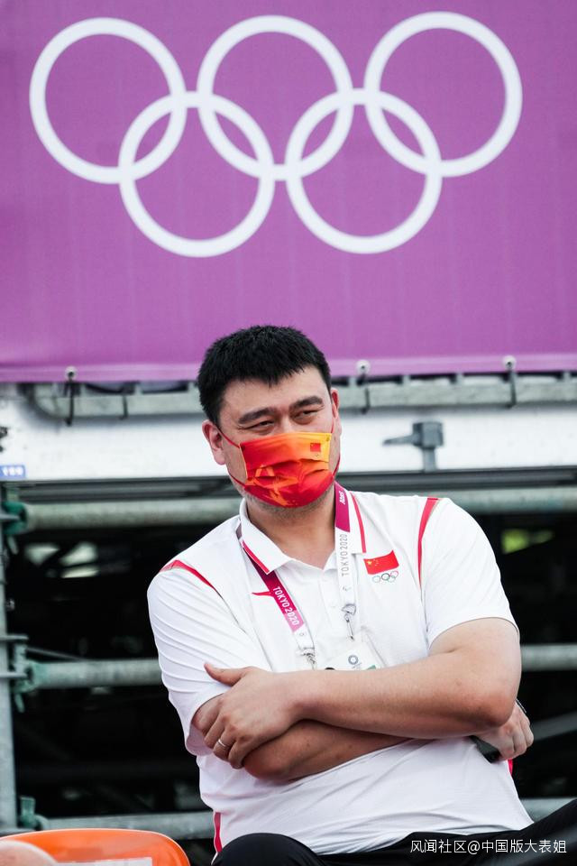 場邊觀賽的姚明。首秀,一切都是陌生的首場比賽,當楊舒予衝進賽場時,她跑到一半就又折回了球員通道。原來,楊舒予還沒等現場播報喊出她的名字就衝進了賽場。