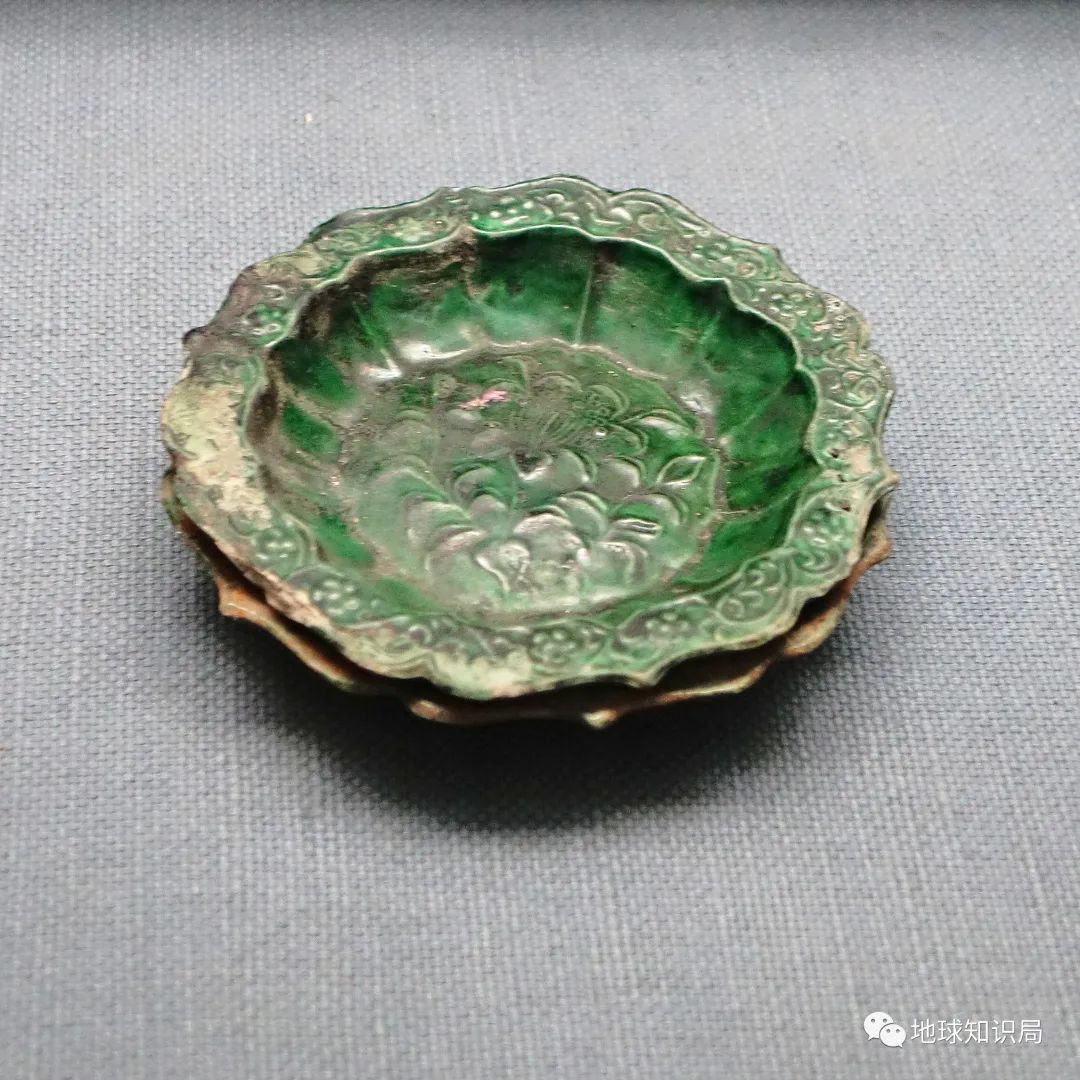 南宋福建磁灶窯綠釉葵口印花小碟
