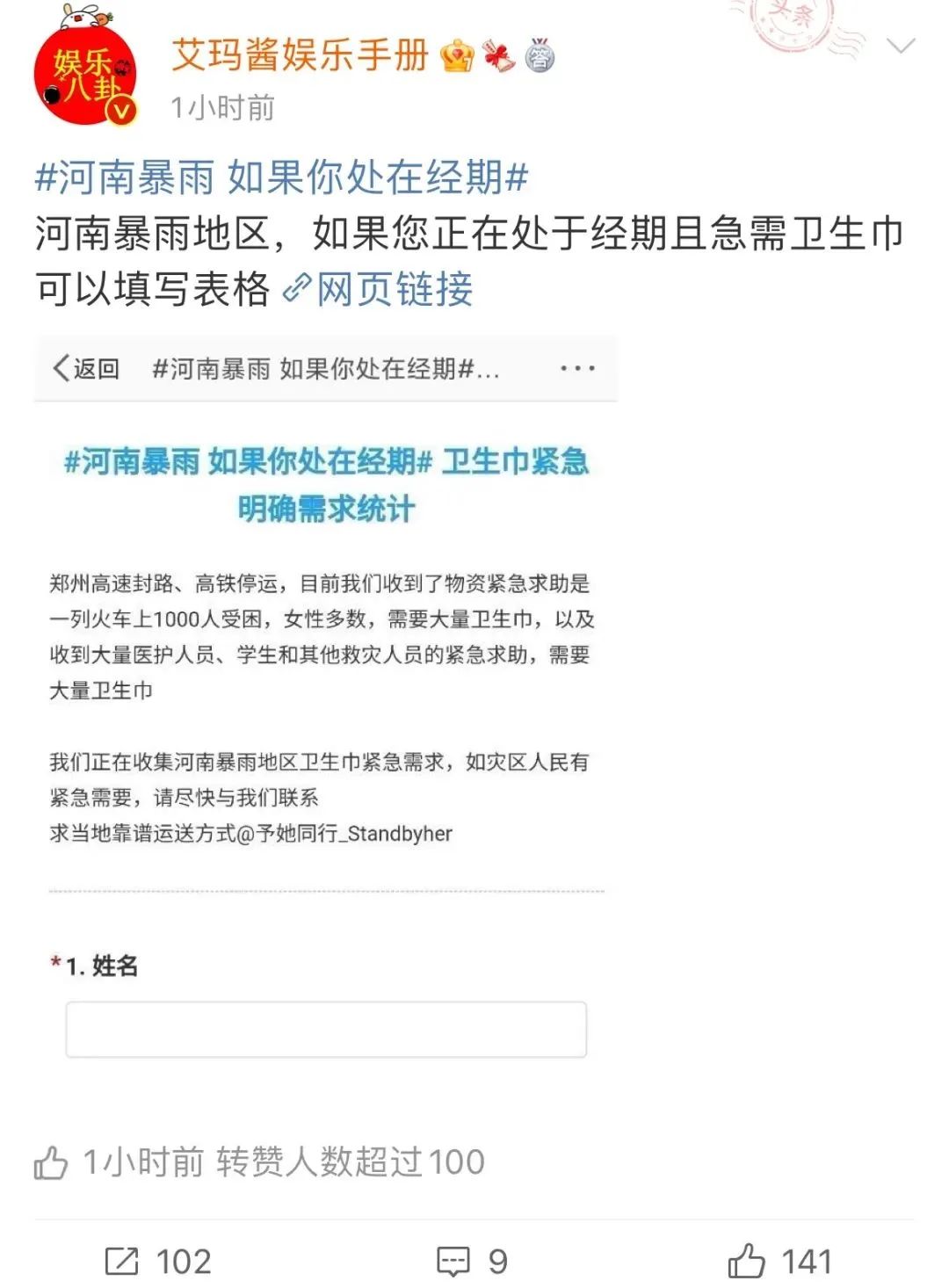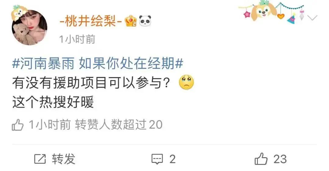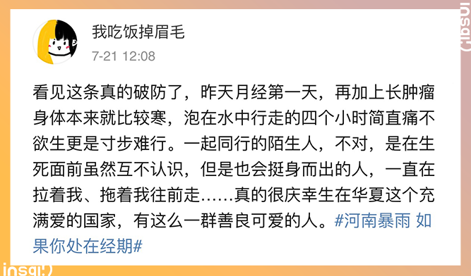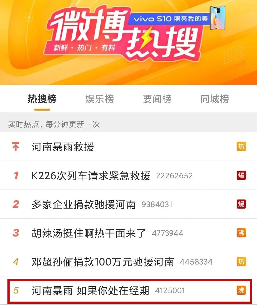 “河南暴雨,如果你處在經期”話題登上熱門,不僅不是矯情,反而是女性之間善意的流動。