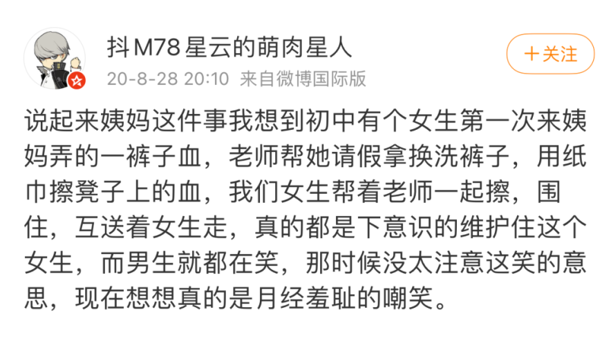 還有很多已經做了母親的人,會教育自己的兒子,正確看待女性的正常生理需求,甚至去幫助那些來月經的女孩。