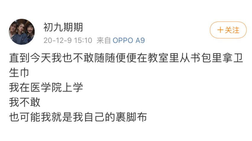 甚至在被批評的時候,對方連月經都不敢提,用了大姨媽來代替。