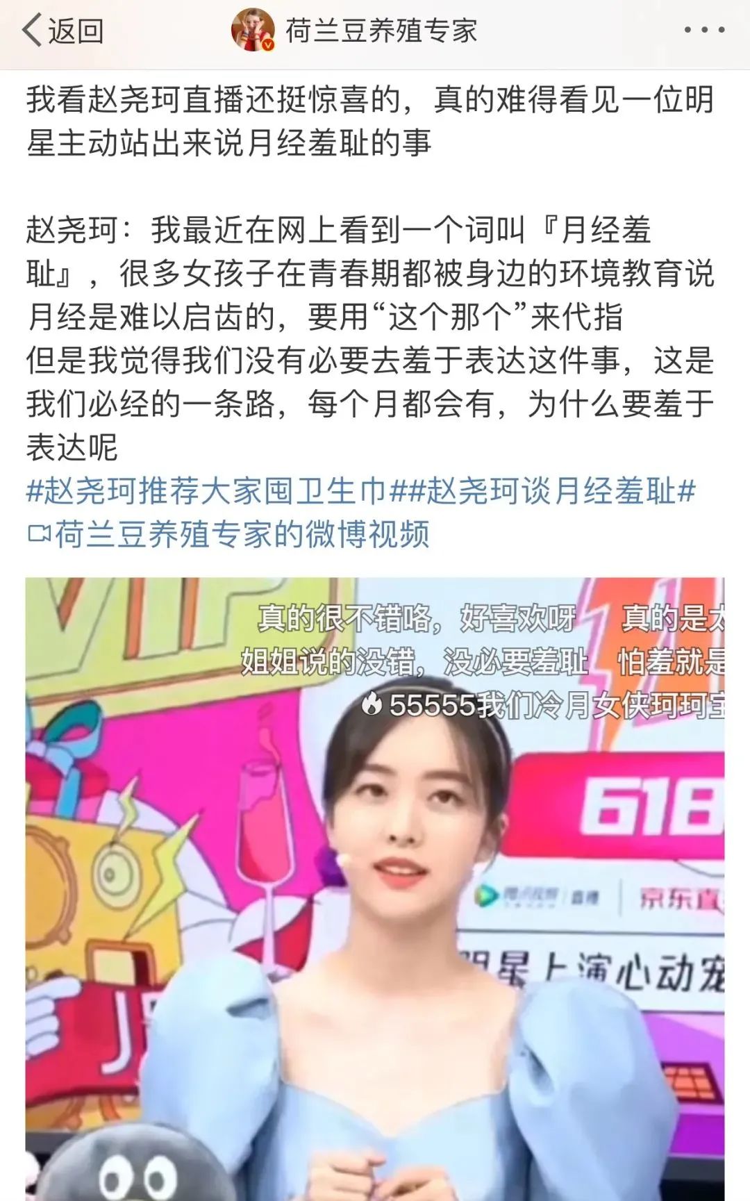 趙堯珂在直播間推薦大家囤衞生巾,還鼓勵女孩子們不要月經羞恥。